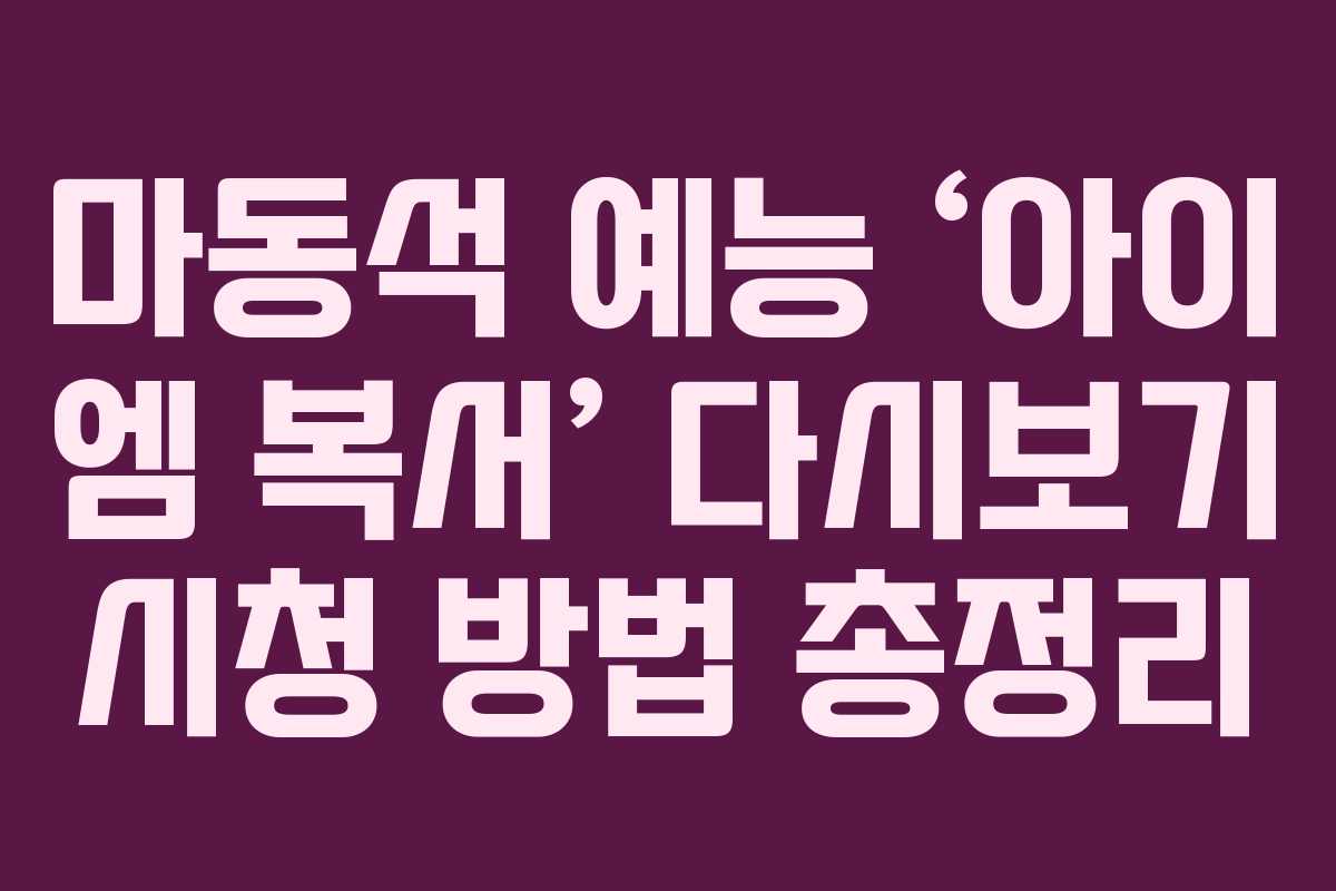 최근 많은 관심을 받고 있는 tvN의 예능 프로그램 ‘아이 엠 복서’는 마동석의 매력이 돋보이는 복싱 소재의 프로그램으로, 첫 방영 이후 높은 시청률을 기록하고 있습니다. 본방송을 놓친 시청자들을 위해 다시보기 시청 방법을 정리해보았습니다.