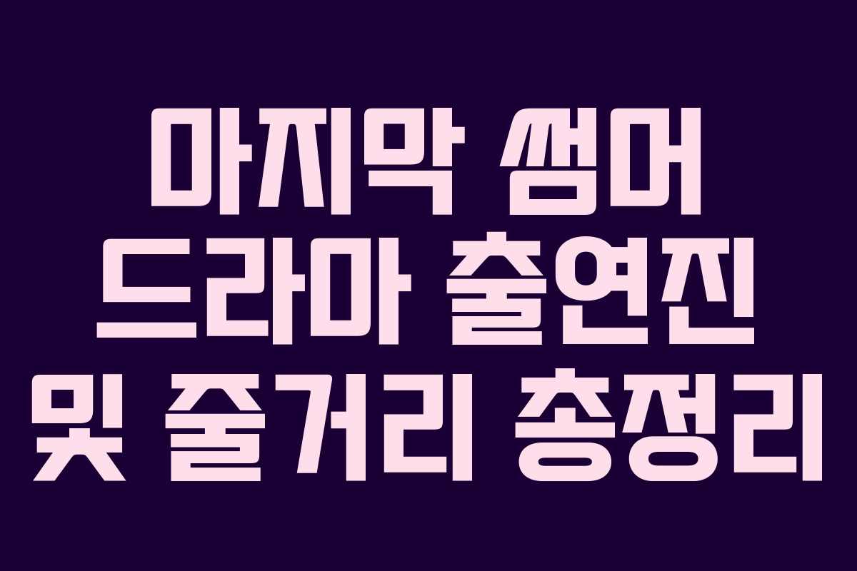 마지막 썸머는 복잡한 감정선과 등장인물 간의 얽히고설킨 관계가 매력적인 드라마입니다. 첫사랑의 아픔과 가족의 상처를 통해 성장하는 캐릭터들의 이야기가 특히 눈길을 끌 것으로 예상됩니다.