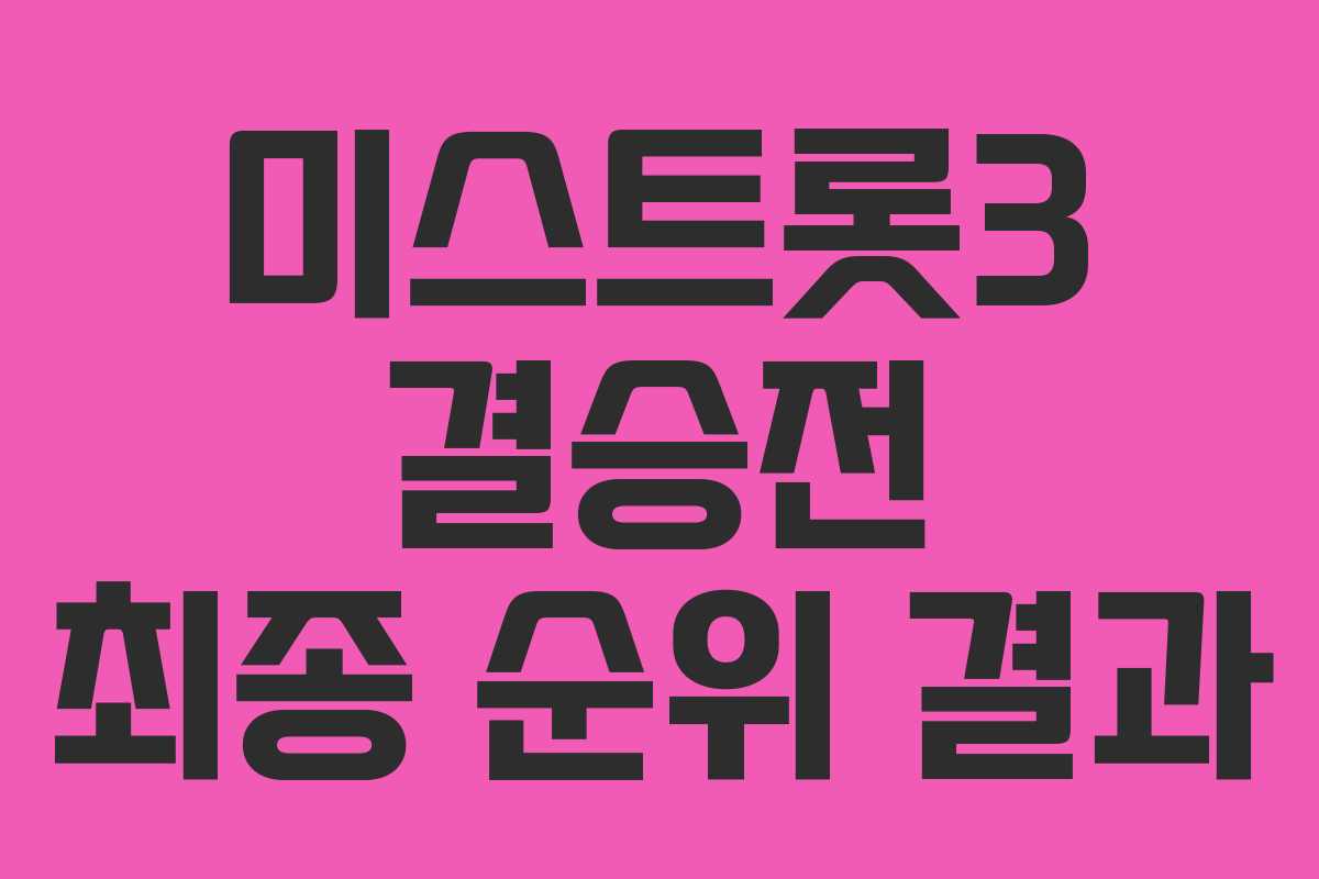 이번 미스트롯3는 많은 이들에게 감동과 즐거움을 선사하며 마무리되었습니다. 각 참가자들의 열정과 노력이 돋보였던 무대였습니다.