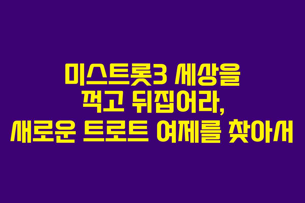 TV CHOSUN의 인기 트로트 서바이벌 오디션 프로그램인 ‘미스트롯3 – 세상을 꺽고 뒤집어라’가 2023년 12월 21일부터 방영됩니다. 이 프로그램은 72명의 참가자가 경쟁하여 최종 우승자에게 3억원의 상금을 수여하는 형식으로 진행됩니다.