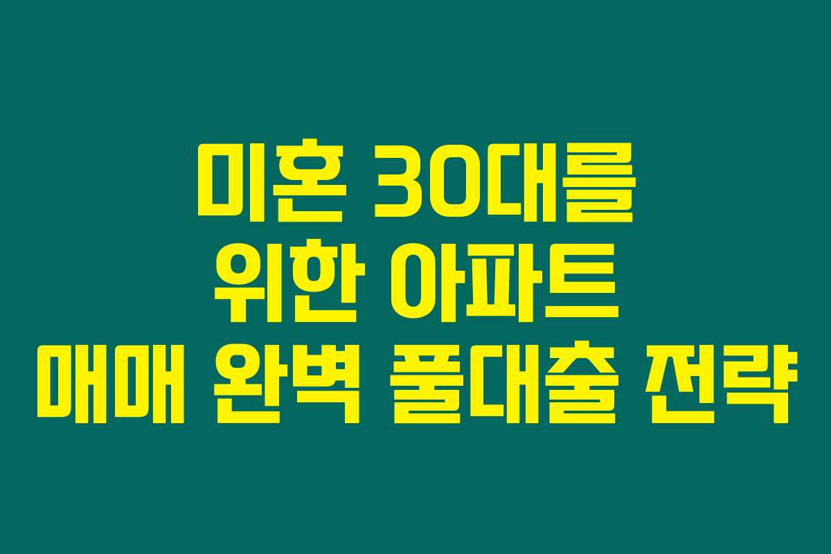 30대 미혼으로 아파트 매매를 위한 풀대출 전략을 세우면서, 많은 요소들을 고려할 수 있습니다. 주택매매를 위한 자금 마련 방법에 대해 신중하게 계획을 세우고 전문가의 도움을 받는 것이 중요합니다. 안정적인 주거 마련을 위한 여정에 좋은 결과가 있기를 바랍니다.