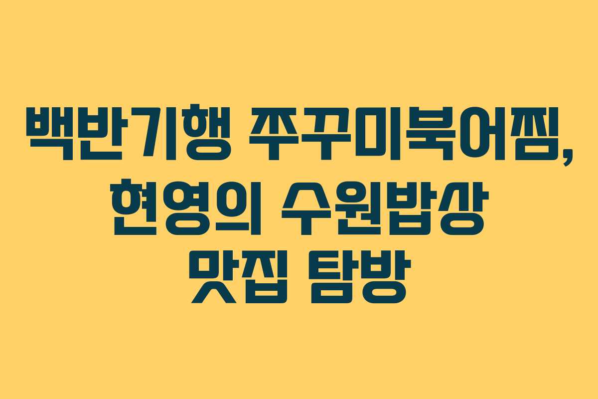 수원 지역 주민들은 이런 맛있는 음식을 가까이에서 즐길 수 있어 매우 부럽습니다. 방송을 보고 나니, 저도 가족들과 함께 매콤한 쭈꾸미찜이나 북어찜을 만들어 먹고 싶다는 생각이 들었습니다.