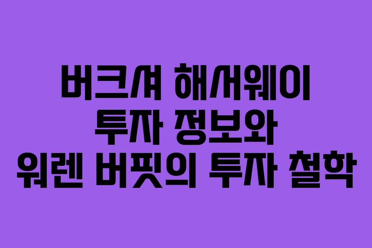 버크셔 해서웨이 투자 정보와 워렌 버핏의 투자 철학