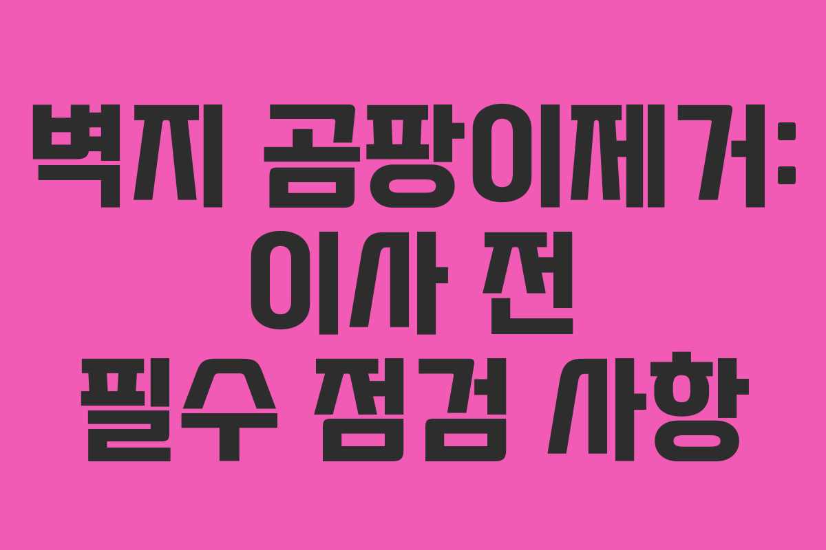 이사 전 벽지 곰팡이를 철저히 제거하고 예방하는 것은 건강과 생활의 질을 높이는 중요한 과정입니다. 전문 업체와 상담하여 안전하고 깨끗한 집으로 이사하시기 바랍니다.