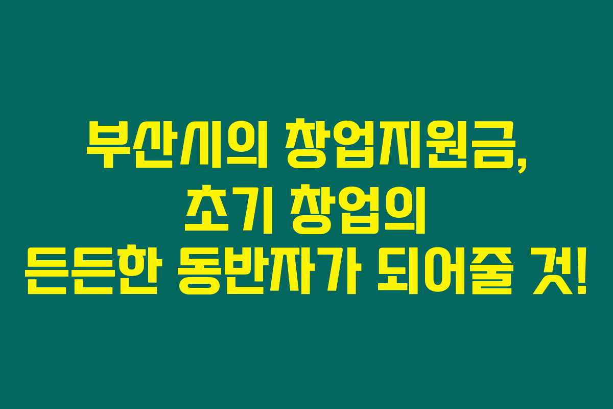 부산시의 창업지원금, 초기 창업의 든든한 동반자가 되어줄 것!