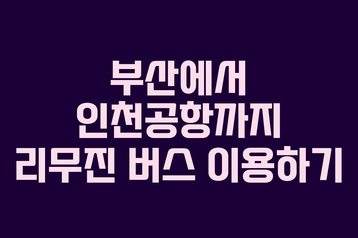 부산에서 인천공항으로 가는 방법 중 하나로 리무진 버스가 있습니다. 지방에서의 긴 이동 과정이 여행의 첫 시작이 될 수 있는 만큼, 편리한 교통수단 선택이 중요합니다.