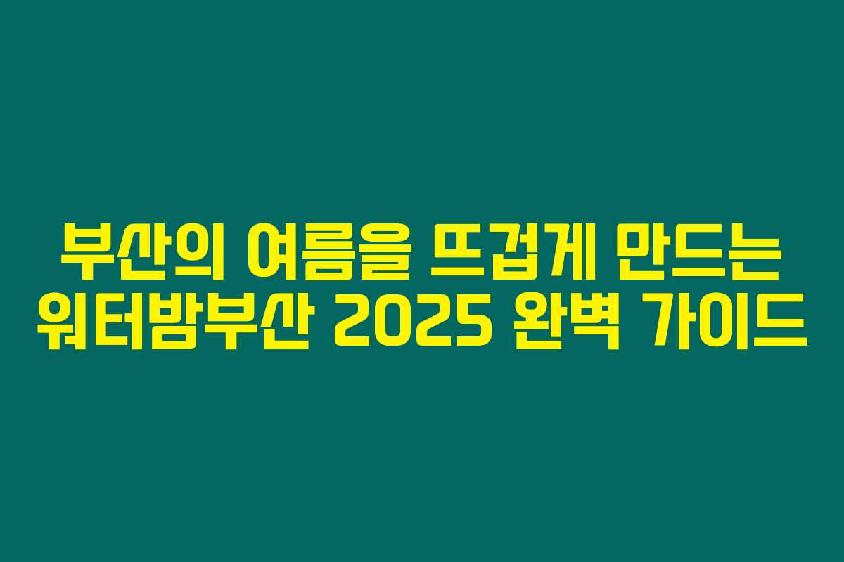 부산의 뜨거운 여름을 만끽할 수 있는 워터밤부산 2025는 여러분에게 특별한 순간을 선사합니다. 올해 여름, 시원한 물놀이와 함께 아름다운 음악을 즐길 수 있는 기회를 놓치지 마세요. 계획 세우고 친구들과 함께 소중한 추억 만들어보세요!