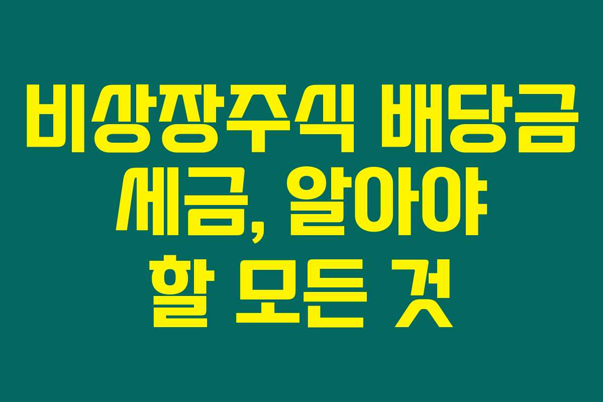 비상장주식 배당금 세금, 알아야 할 모든 것