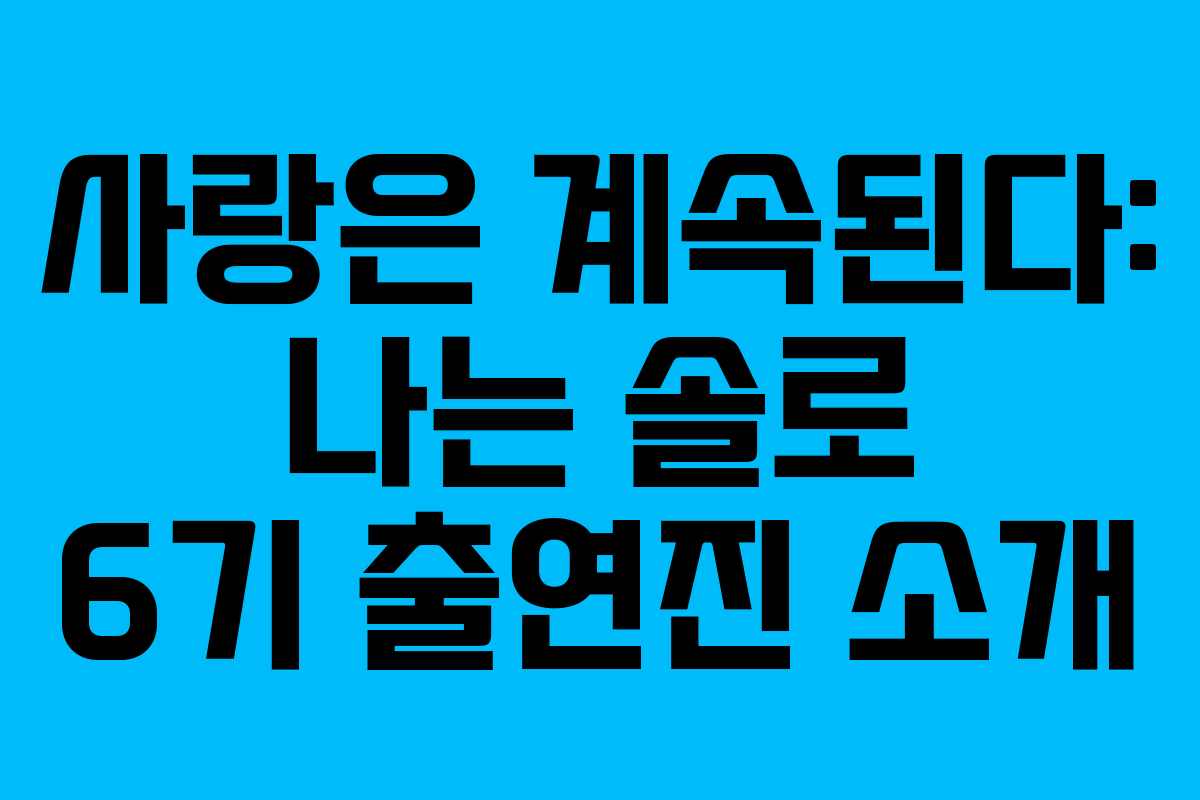 ENA와 SBS PLUS의 인기 프로그램 ‘나는 솔로’의 후속편인 ‘사랑은 계속된다’에서는 다양한 출연진의 매력이 돋보입니다. 이번 포스트에서는 6기 출연자들과 그들의 개인적인 정보 및 매력을 살펴보겠습니다.