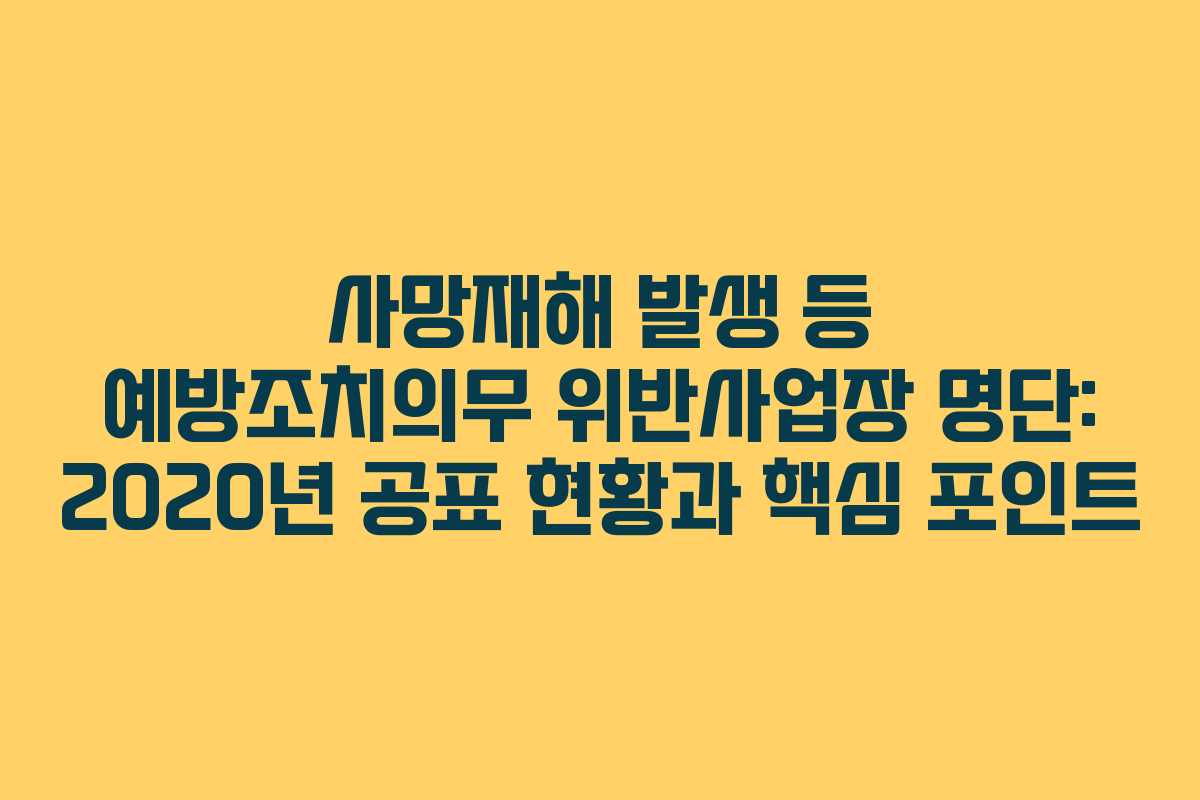 사망재해 발생 등 예방조치의무 위반사업장 명단: 2020년 공표 현황과 핵심 포인트