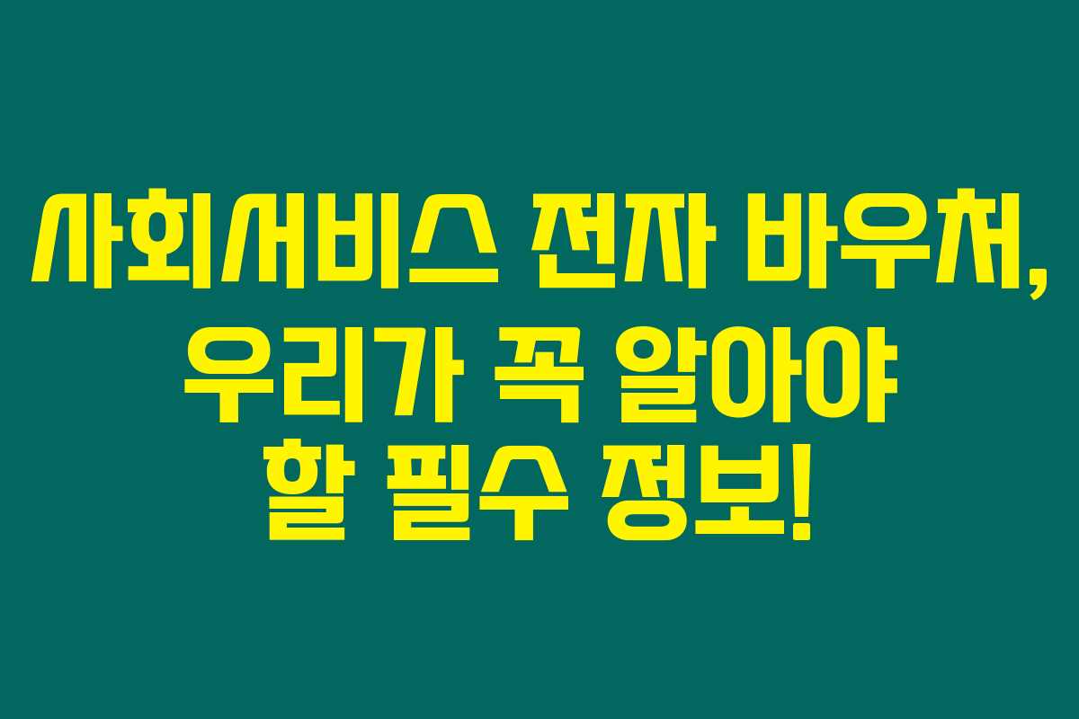 제가 직접 알아본 바로는 사회서비스 전자 바우처는 취약계층에게 중요한 사회적 지원을 제공하는 훌륭한 제도입니다. 이 전자 바우처는 정부가 지정한 대상자에게 서비스를 이용할 수 있도록 돕는 전자화폐로, 현재 많은 사람들에게 큰 도움이 되고 있어요. 아래를 읽어보시면 이 전자 바우처가 어떤 것인지, 어떻게 활용할 수 있는지, 그리고 장단점에는 무엇이 있는지에 대해 자세히 알아볼 수 있습니다.