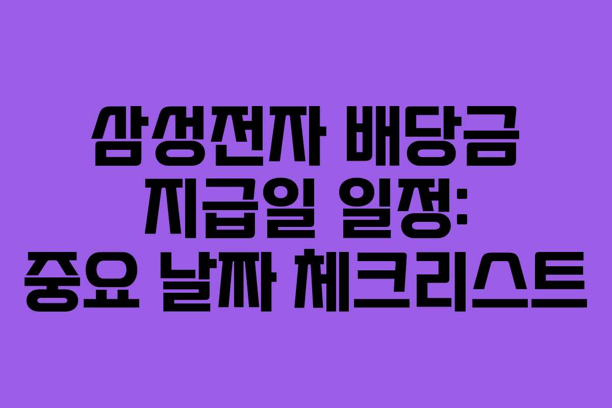 삼성전자는 매년 안정적인 배당금을 지급하는 기업으로, 많은 투자자들에게 중요한 의미를 갖습니다. 배당금은 기업이 이익의 일부를 주주에게 나누어 주는 것으로, 주주들에게는 수익을 공유하는 중요한 요소입니다. 이번 글에서는 삼성전자의 배당금 지급일과 관련된 주요 날짜들을 체크리스트 형식으로 정리해 보겠습니다.