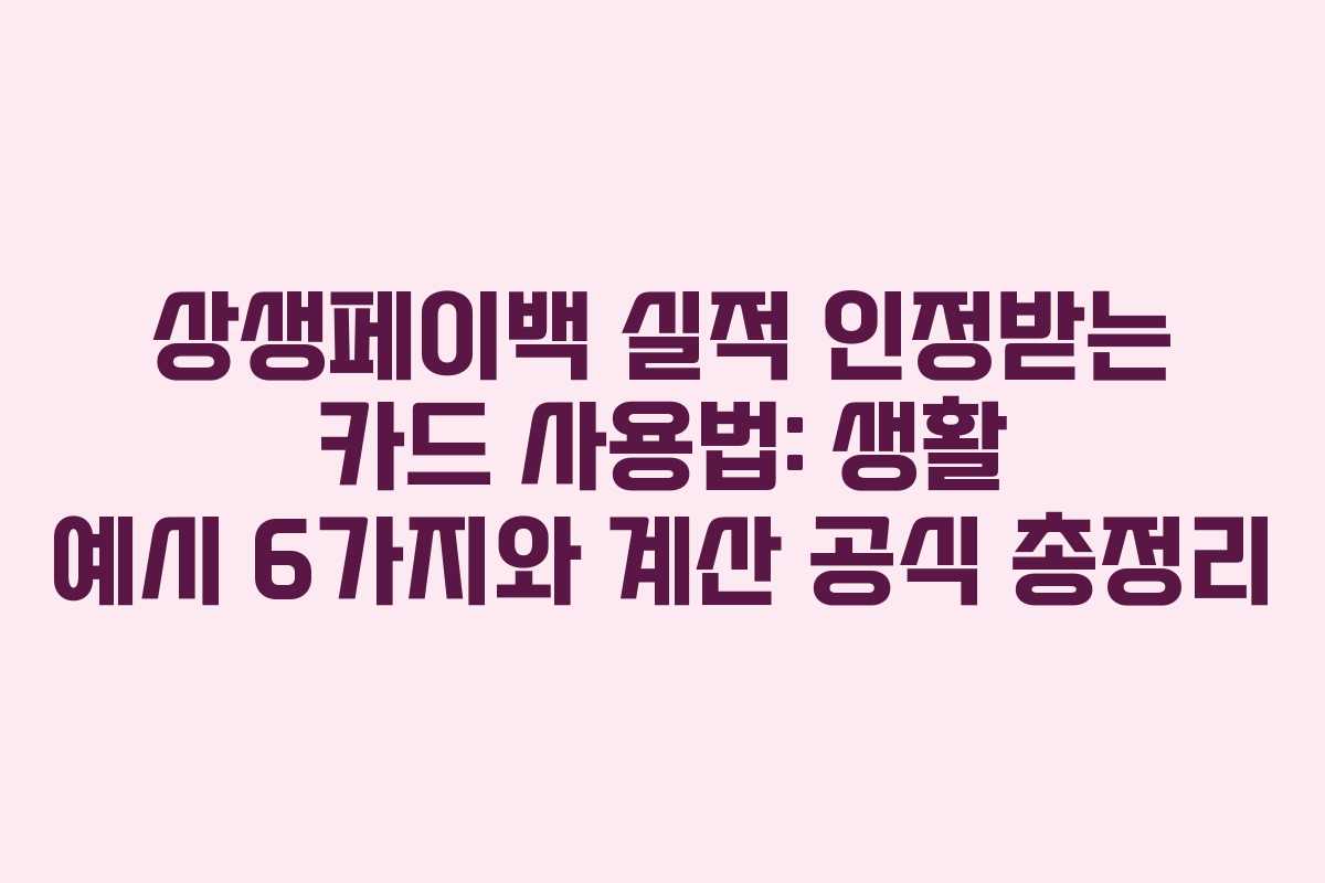 상생페이백은 지역 소상공인의 매출을 지원하고 소비자에게 혜택을 주기 위한 소비 환급 제도입니다. 여기에서는 상생페이백을 통해 실적을 인정받을 수 있는 카드 사용법을 생활 속 예시를 통해 정리하고, 계산 공식을 포함해 효율적인 활용 방법을 안내합니다.