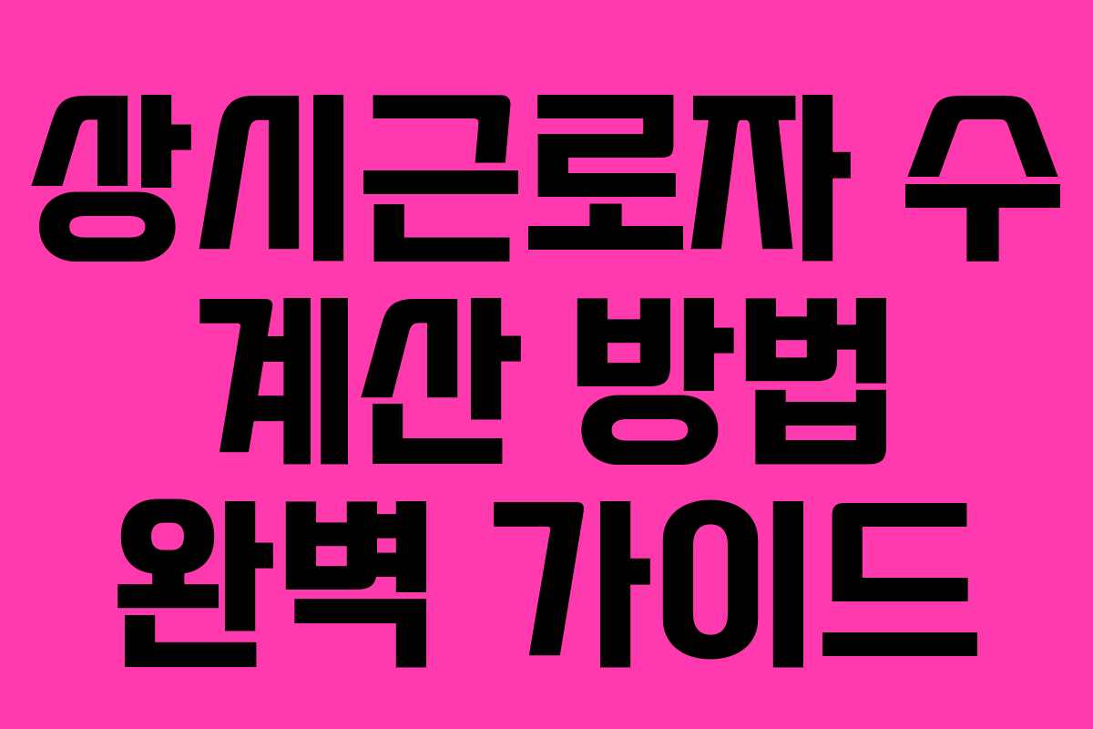 상시근로자 수를 정확히 산정하는 것은 사업 운영에 있어 매우 중요한 요소입니다. 이 수치는 근로기준법을 비롯한 여러 노동관계법의 적용 여부를 결정하며, 법적 의무의 시작점으로 작용합니다. 본 글에서는 상시근로자 수를 계산하는 방법과 주의해야 할 점들을 살펴보겠습니다.