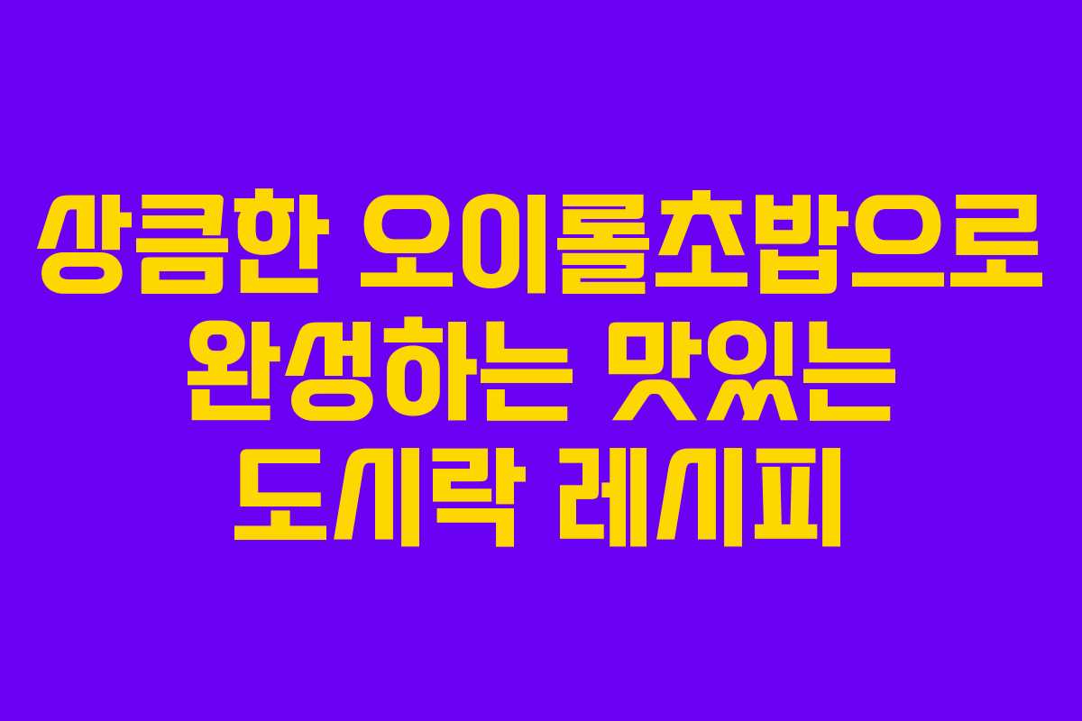 오이롤초밥은 간단하면서도 맛있는 도시락 메뉴로, 다양한 상황에서 활용할 수 있습니다. 특히 소풍이나 나들이에 적합하며, 식어도 맛이 변하지 않는 장점이 있습니다. 이 레시피를 통해 특별한 하루를 더욱 특별하게 만들어 보길 바랍니다.