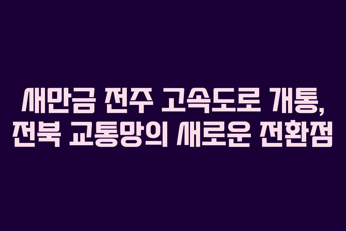 2025년 11월 22일, 새만금-전주 고속도로가 개통됨에 따라 전라북도 지역의 교통망이 크게 개선될 전망입니다. 이번 도로의 개통은 경제적 편익과 함께 지역 관광 활성화에도 기여할 것으로 기대됩니다.