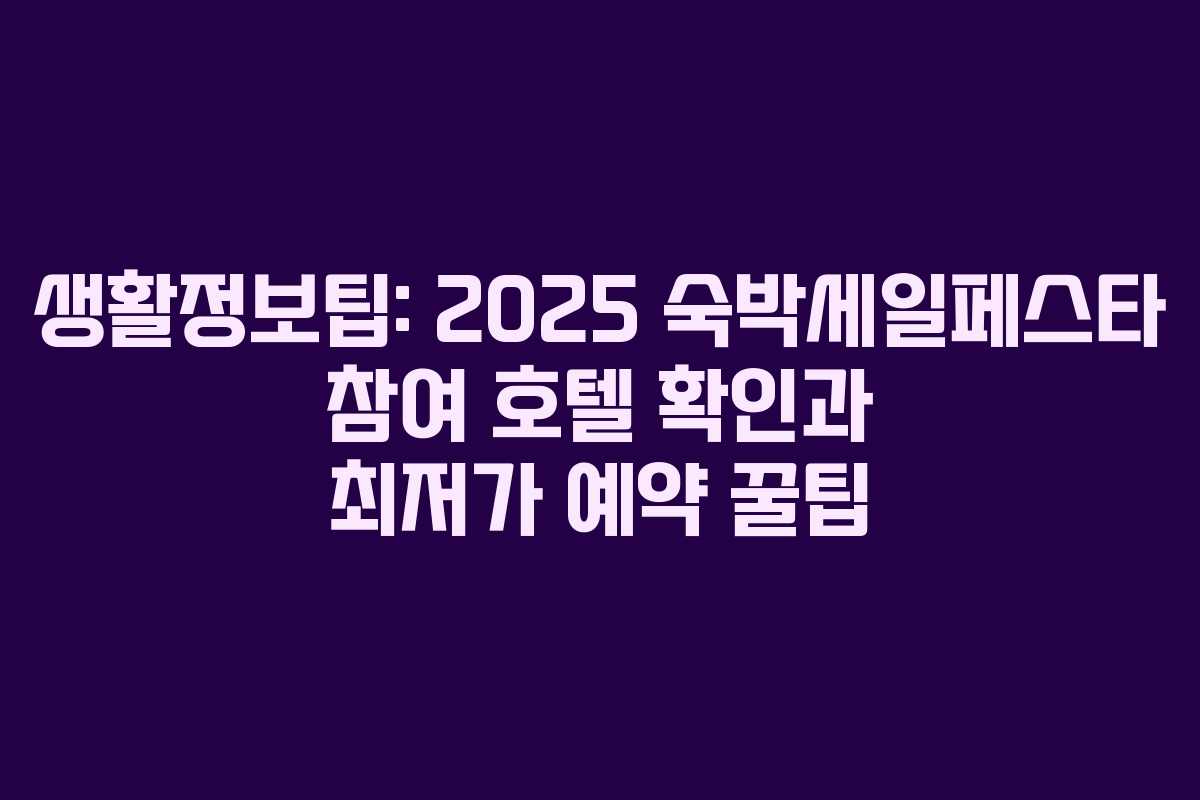 아래를 읽어보시면 2025 숙박세일페스타 참여 호텔 확인 방법과 최저가 혜택을 놓치지 않는 실전 팁을 확인할 수 있습니다.