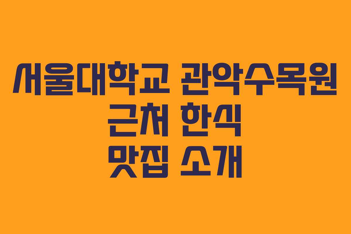 서울대학교 관악수목원 근처 한식 맛집 소개