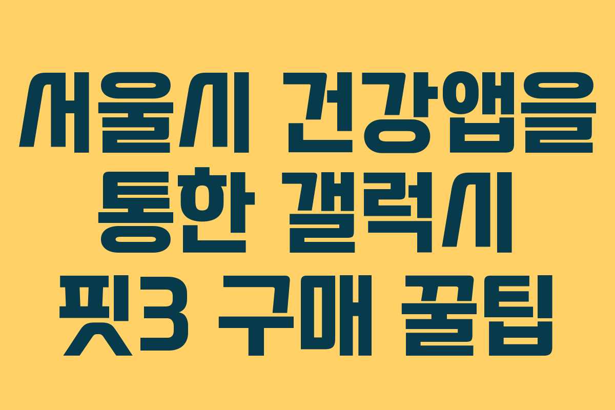이와 같은 꿀팁을 통해 서울시민이라면 건강을 챙기고 갤럭시 핏3를 절약하여 구매하는 기회를 놓치지 마세요!