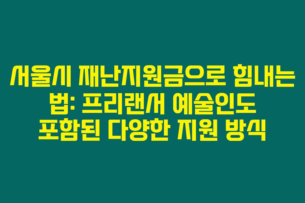 서울시 재난지원금으로 힘내는 법: 프리랜서 예술인도 포함된 다양한 지원 방식