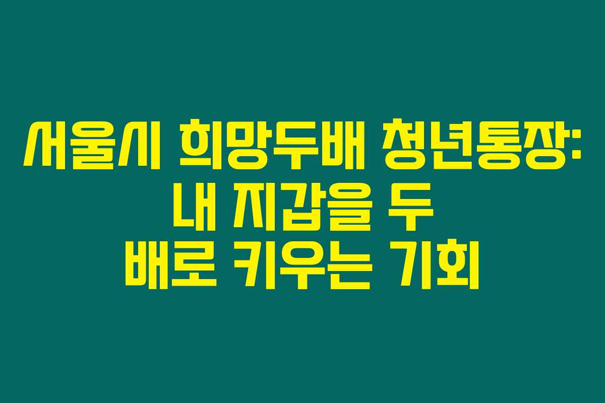 서울시 희망두배 청년통장: 내 지갑을 두 배로 키우는 기회