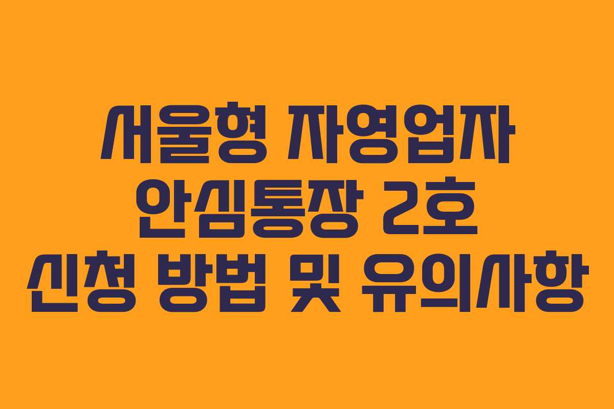 서울형 자영업자 안심통장 2호 신청 방법 및 유의사항
