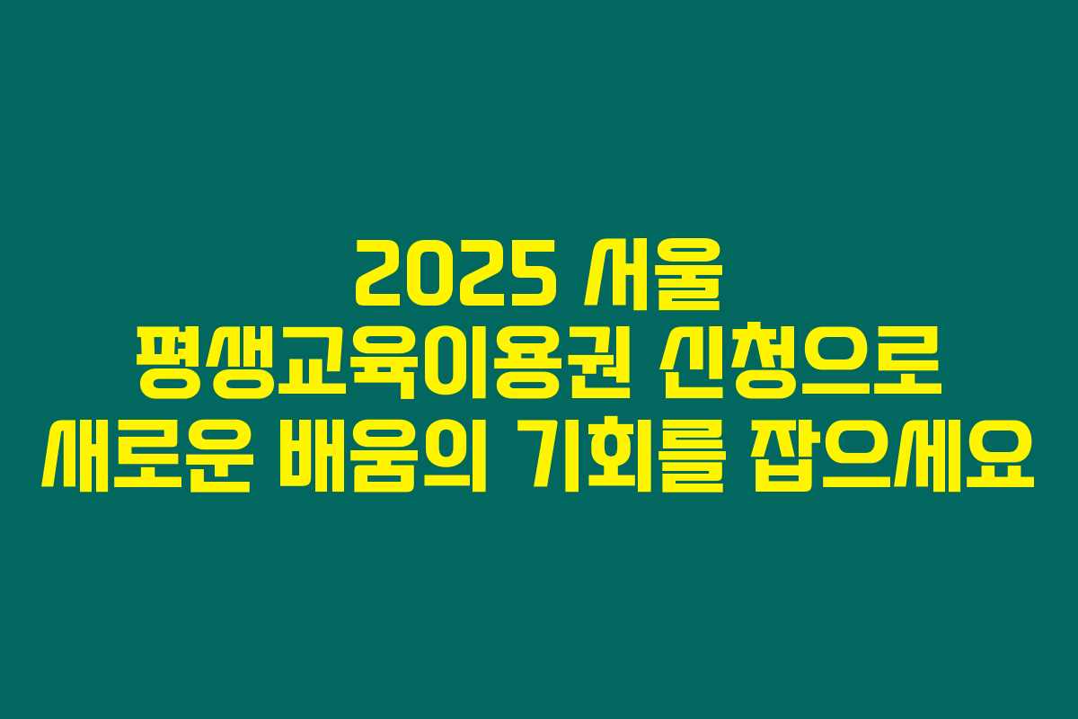 2025년은 여러분이 새로운 배움을 시작할 수 있는 좋은 기회가 될 것입니다. 평생교육이용권을 활용하면 자격증 취득과 자기계발, 자녀 교육에 이르기까지 다양한 혜택을 경험할 수 있어요. 서울시민이라면 누구나 신청할 수 있으니, 지금 바로 자격을 확인하고 교육의 첫걸음을 내딛어보세요!