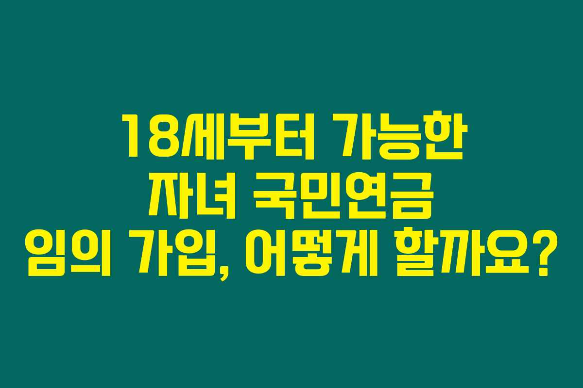 18세부터 가능한 자녀 국민연금 임의 가입, 어떻게 할까요?