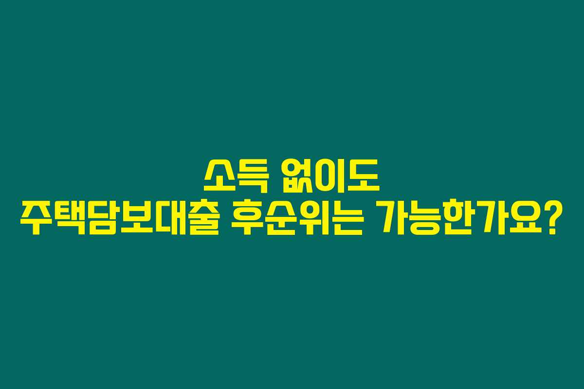 소득 없이도 주택담보대출 후순위는 가능한가요?