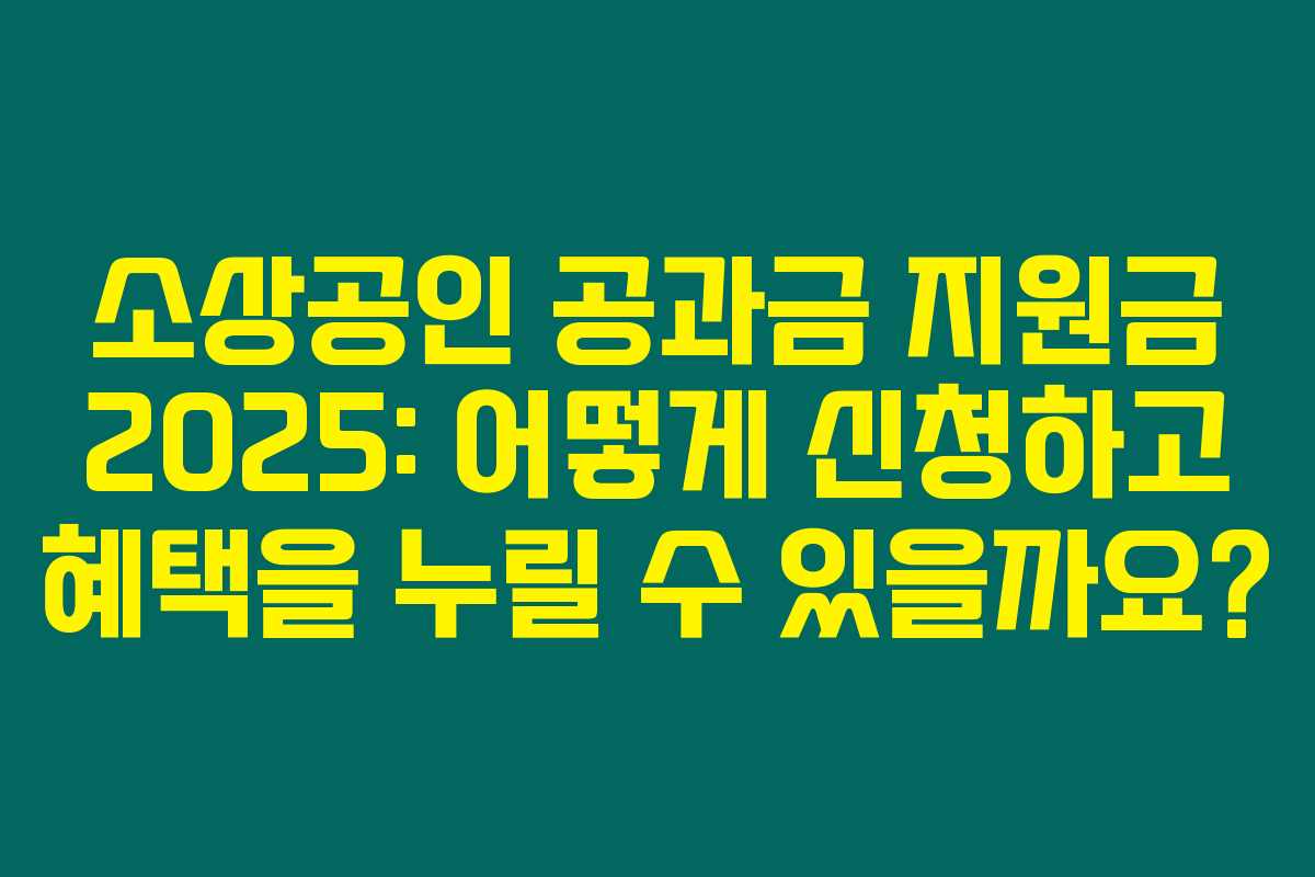 제가 직접 체크해본 바로는 2025년 정부가 소상공인들을 위해 준비한 공과금 지원금 프로그램이 큰 화제가 되고 있어요. 이 지원금은 경제적 어려움 속에서 살아남으려는 소상공인들에게 실질적인 도움을 줄 수 있는 방안으로, 많은 사람들이 궁금해 하는 내용들을 정리해 보았어요. 아래를 읽어보시면 이번 지원금의 다양한 정보와 신청 방법에 대해 확실히 이해할 수 있답니다.