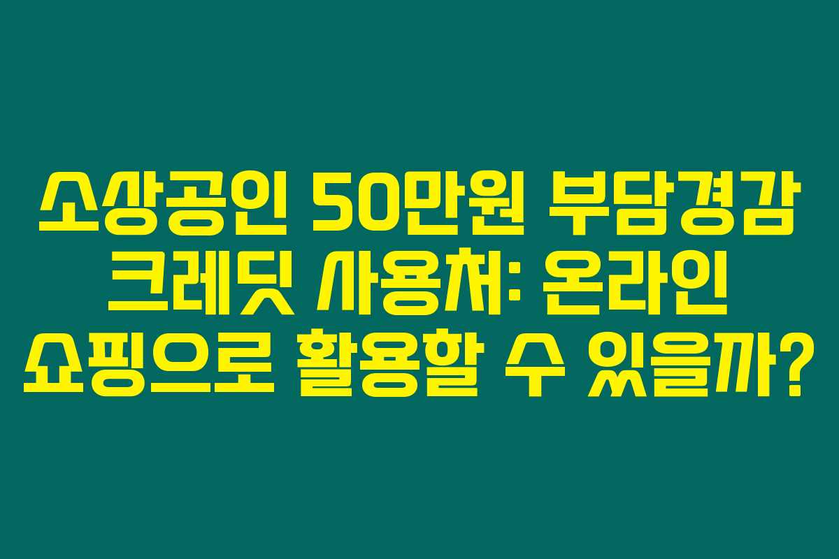 소상공인을 위한 부담경감 크레딧이 나온다는 소식에 많은 분들이 궁금해하실 것 같아요. 특히 이 크레딧이 ‘온라인 쇼핑’에서도 사용할 수 있는지에 대한 질문이 많거든요. 만약 온라인 쇼핑이 가능하다면 소비에 큰 도움이 될 수 있는데요. 아래를 읽으시면 이와 관련하여 알아야 할 정보를 정리해보았어요.