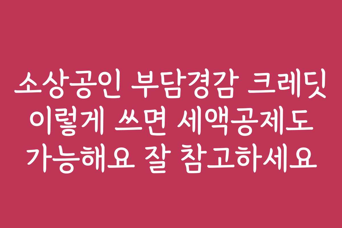 소상공인 부담경감 크레딧 이렇게 쓰면 세액공제도 가능해요 잘 참고하세요