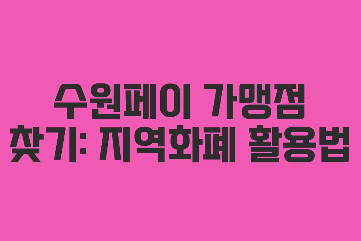 수원페이 가맹점 찾기: 지역화폐 활용법