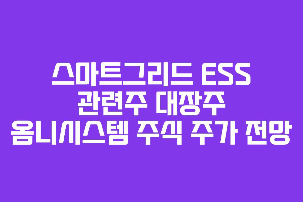 스마트그리드와 에너지 저장 시스템(ESS)은 현대 에너지 산업에서 중요한 역할을 하고 있습니다. 특히, 옴니시스템은 이 분야에서 두각을 나타내고 있으며, 앞으로의 주가 전망에 대한 관심이 높아지고 있습니다.