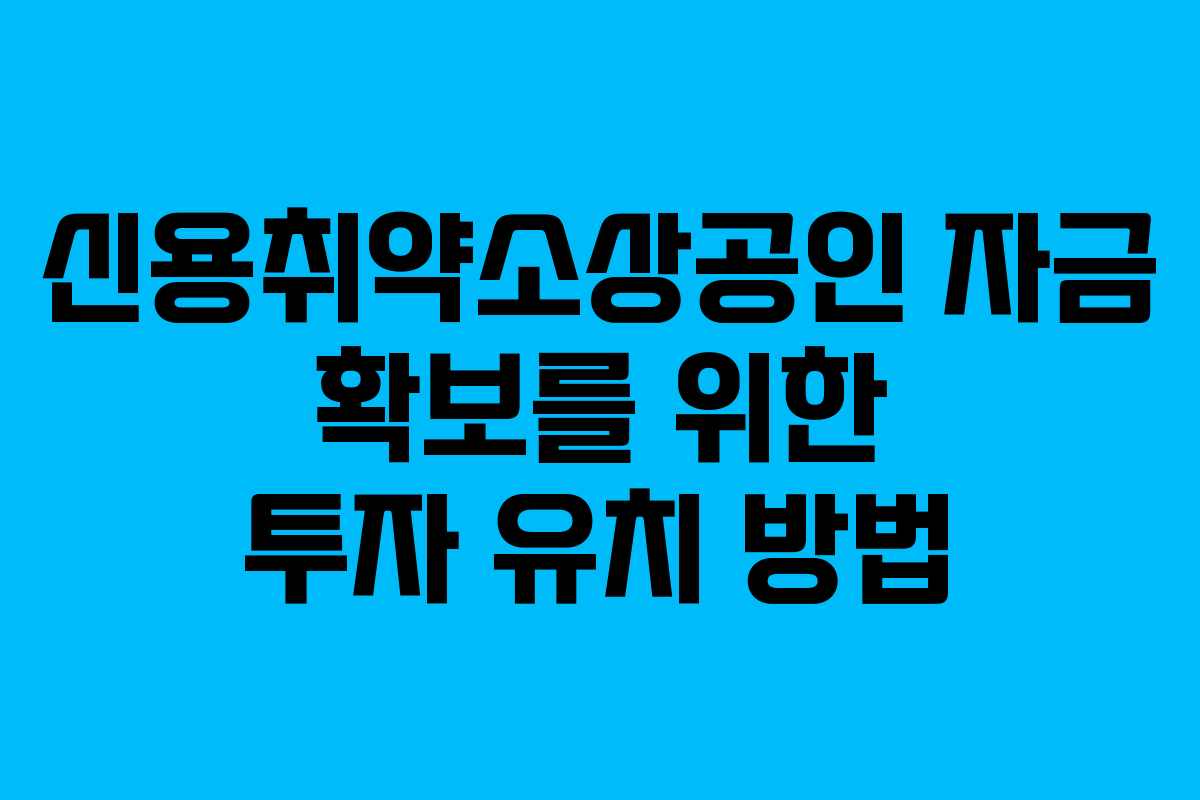 신용취약소상공인으로서 자금을 확보하는 일은 언제나 큰 도전입니다. 신용도가 낮아 대출이 어려운 경우가 많고, 고금리로 인한 부담도 적지 않습니다. 이럴 때 투자 유치는 효과적인 해결책이 될 수 있습니다. 이번 글에서는 신용취약소상공인이 자금을 확보하기 위한 다양한 투자 유치 방법과 경험을 공유해보겠습니다.