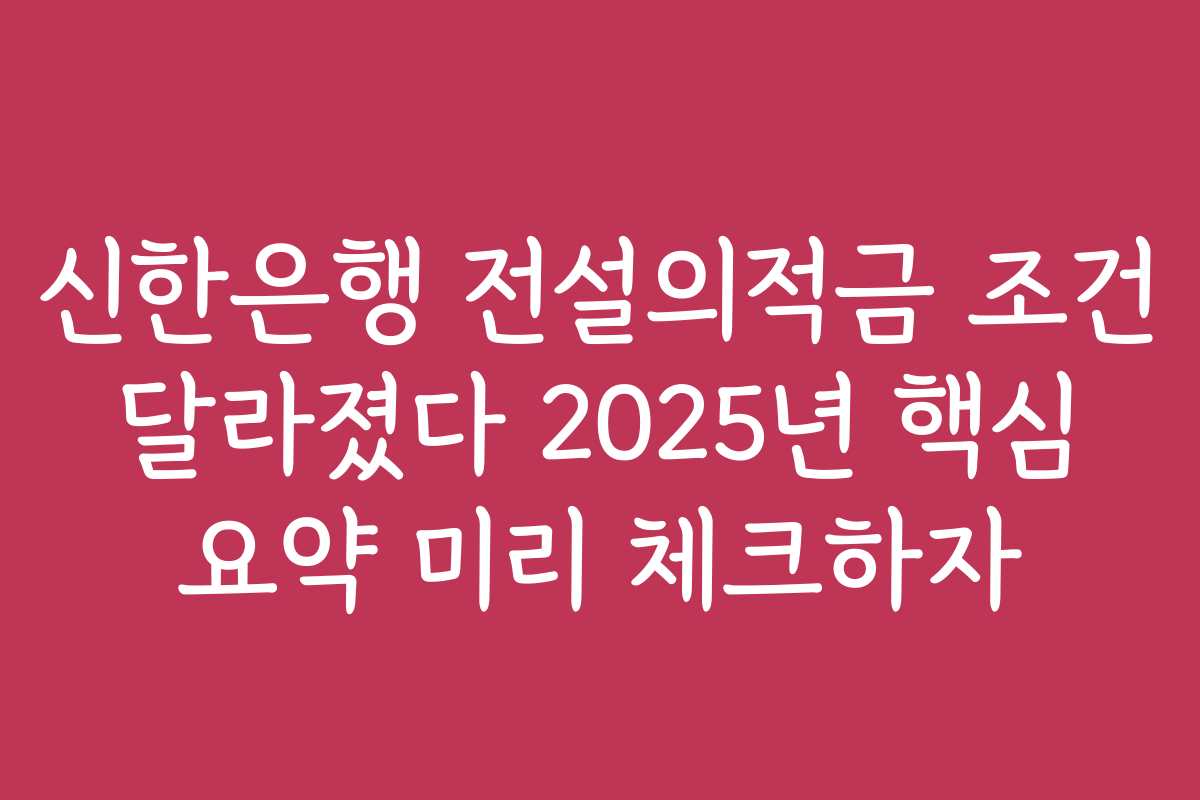 신한은행 전설의적금, 그 조건이 변했습니다! 많은 분들이 새로운 조건에 대해 혼란을 겪고 있습니다. 이 글에서 신한은행 전설의적금 조건 달라졌다 2025년 핵심 요약을 통해 실질적인 정보를 제공하겠습니다.