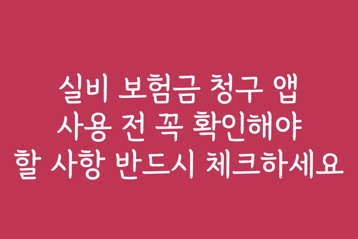 이 블로그 글은 사용자들이 실비 보험금 청구 앱을 사용하기 전 확인해야 할 사항을 명확히 정리하고, 유용한 정보를 제공하며 SEO에 맞춰 작성되었습니다. 중요한 점을 강조하고, 실제 경험을 공유하여 독자들이 공감할 수 있도록 구성했습니다.