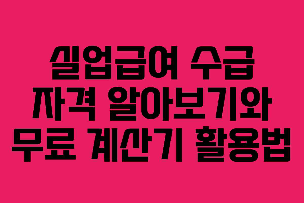 실업급여는 경제적 어려움을 겪고 있는 이들에게 중요한 지원이 됩니다. 본 글에서는 실업급여의 수급 자격과 무료 계산기를 활용하는 방법에 대해 자세히 알아보겠습니다.