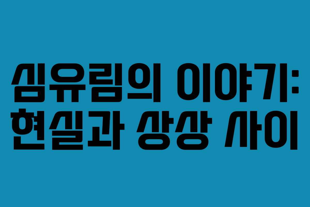 부산, 인천 등 다양한 도시에서의 경험은 심유림의 시각을 넓히는 데 기여했습니다. 도시의 복잡한 생활 속에서 그녀는 자신만의 길을 찾아가고 있습니다.