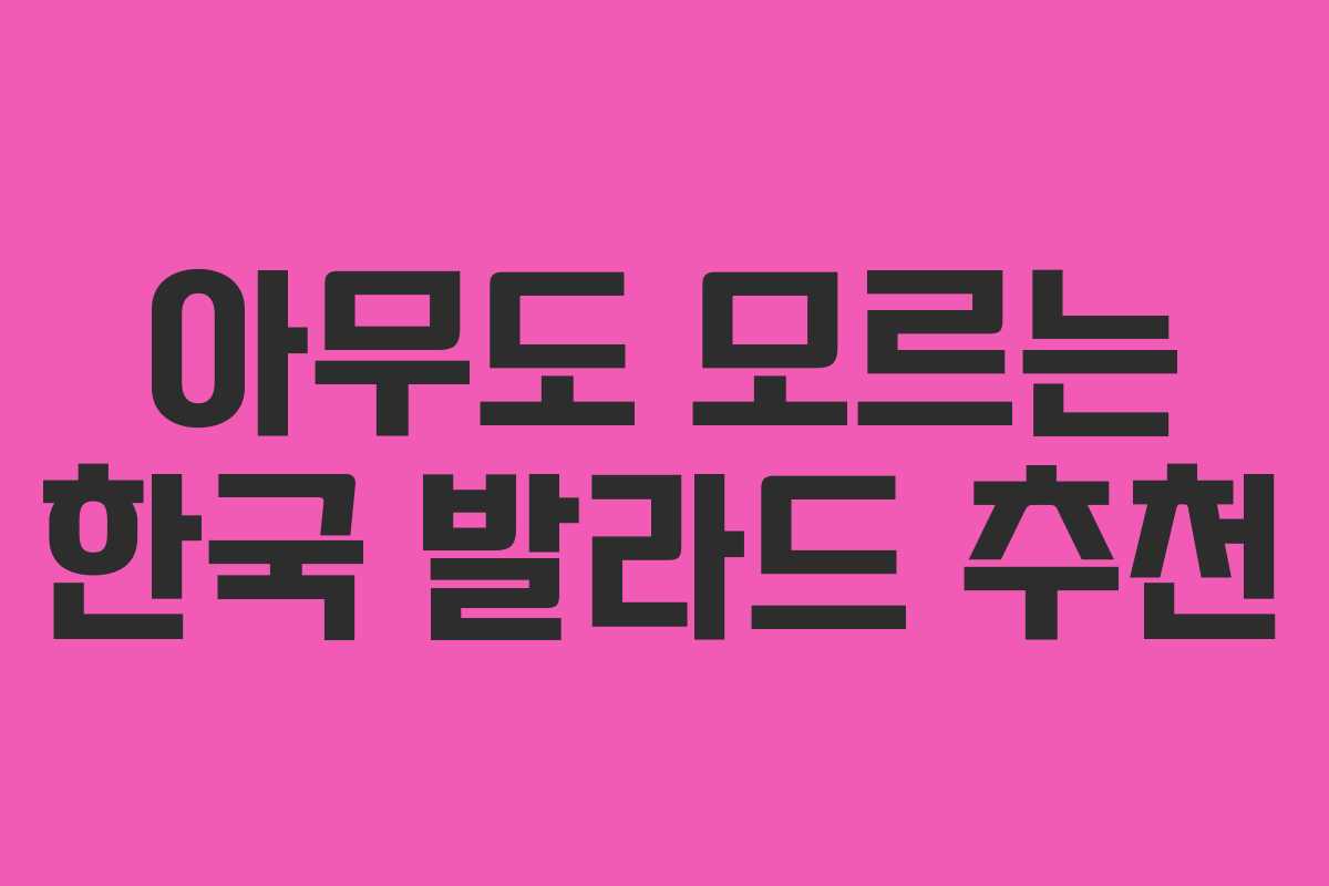 한국의 발라드는 그 깊이와 감성으로 많은 이들에게 사랑받고 있습니다. 이번 글에서는 잘 알려지지 않았지만 훌륭한 발라드 곡들을 소개하겠습니다. 유명한 아티스트들의 숨겨진 명곡들이기에 믿고 들어보셔도 좋습니다.