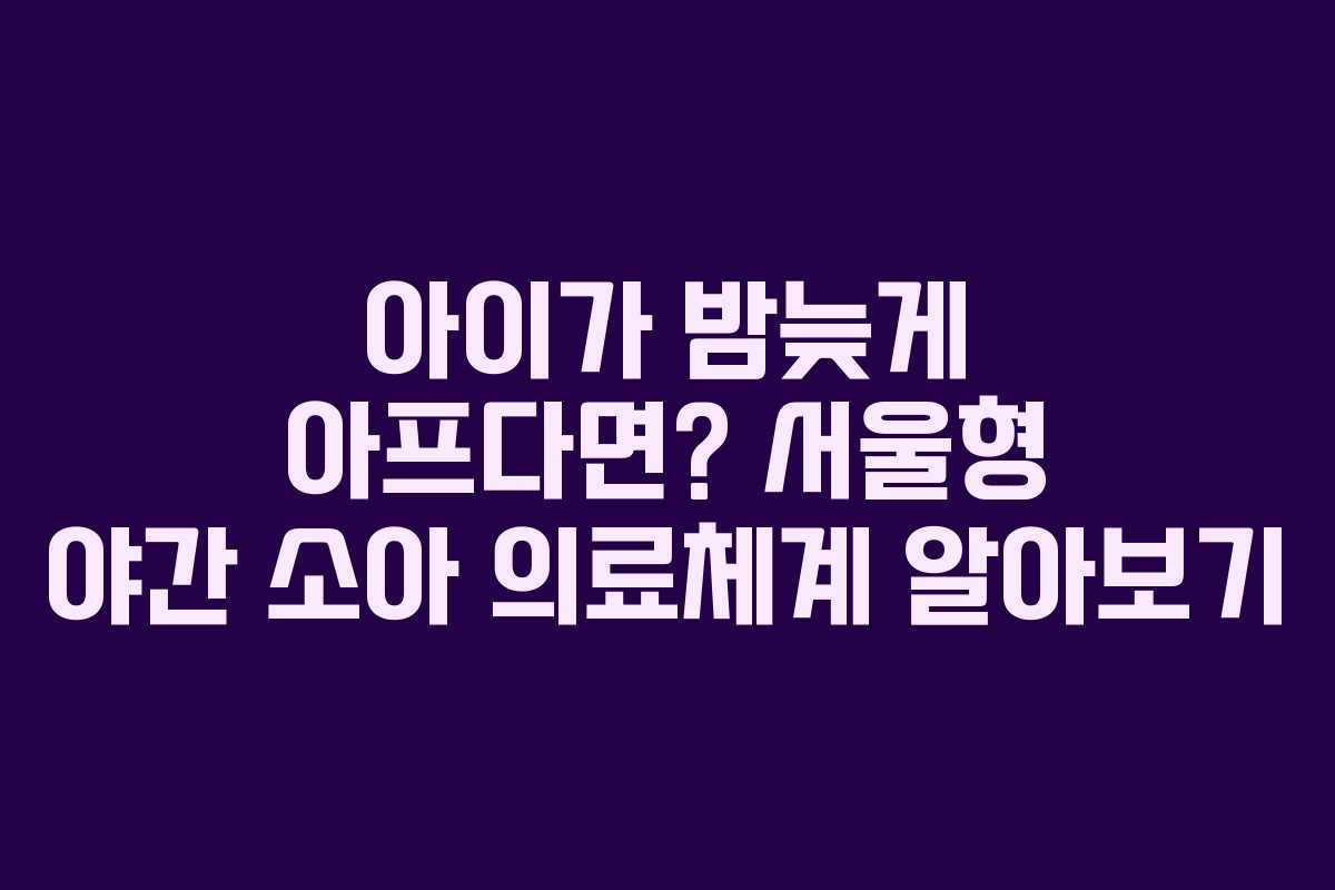 아이가 밤에 아프면 어떤 병원으로 가야 할지 고민되실 것입니다. 일반 응급실은 중환자와 함께 대기해야 하므로, 아이에게는 오히려 두려운 환경이 될 수 있습니다. 이럴 때 서울형 야간 소아 의료체계를 활용하면 보다 안전하고 빠르게 진료를 받을 수 있습니다. 이번 글에서는 서울의 소아 응급실 및 의료체계에 대해 자세히 알아보겠습니다.