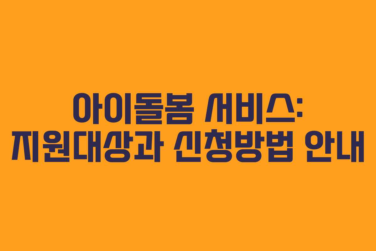 답변: 아이돌봄 서비스는 해당 지역의 복지센터를 통해 신청할 수 있습니다. 자격 요건을 확인한 후 신청서를 제출하면 됩니다.