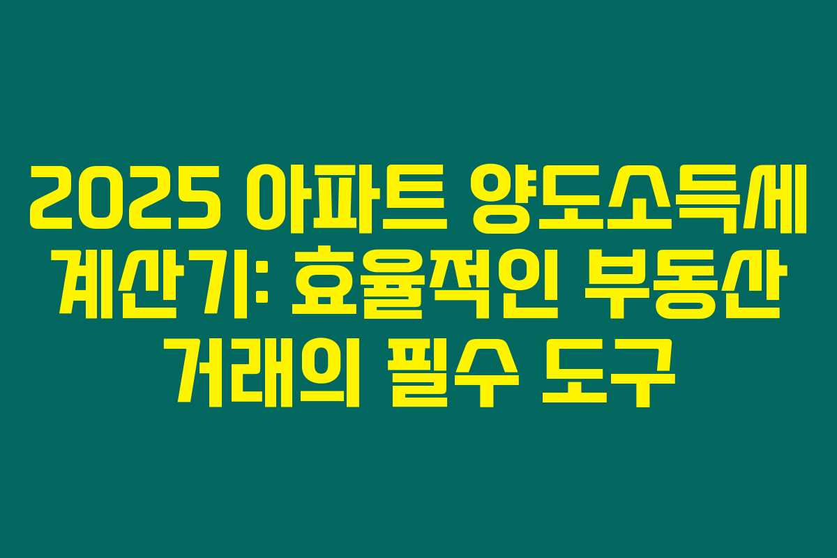 2025 아파트 양도소득세 계산기: 효율적인 부동산 거래의 필수 도구