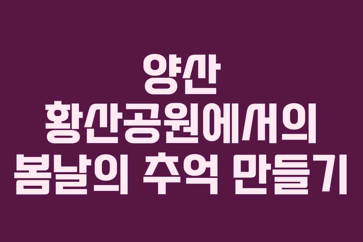 봄이 오는 길목에서 가족과 함께하는 소중한 시간이 필요하다면 양산의 황산공원이 제격이다. 이곳은 아름다운 벚꽃과 함께 다양한 꽃들이 만발하는 장소로, 아버님과의 소중한 시간을 더욱 특별하게 만들어준다. 주차와 대중교통 이용이 용이하며, 자연 속에서 가족과의 소중한 추억을 쌓을 수 있는 완벽한 장소다.