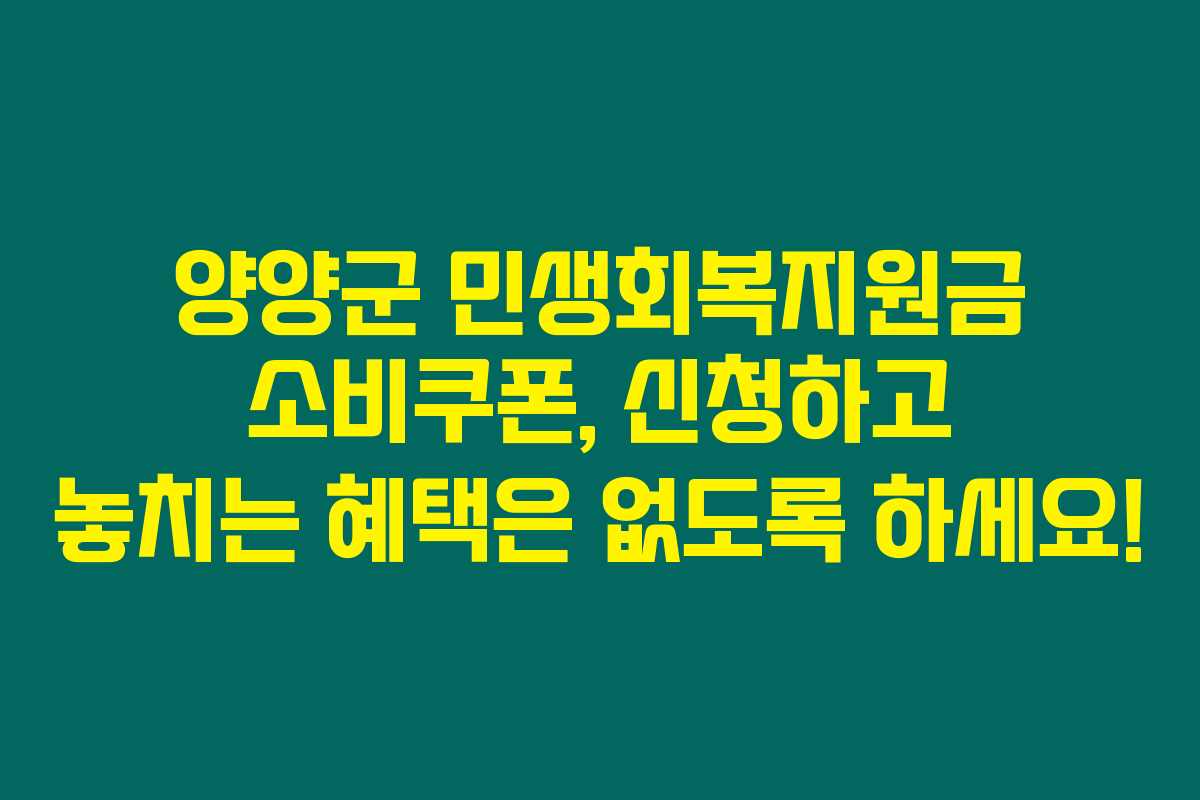 양양군민으로서 민생회복지원금 소비쿠폰을 통해 소비를 하며 더욱 나은 생활을 할 기회를 놓치지 말아야 해요. 소비쿠폰 외에도 여러 혜택이 있으니 빨리 신청해 보세요!