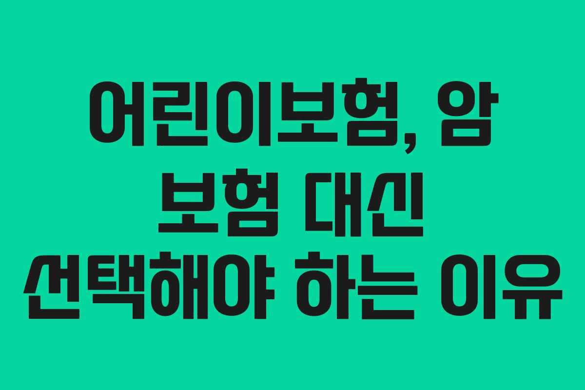 어린이보험은 보험료가 저렴하면서도 암에 대한 포괄적인 보장을 제공하는 특별한 상품입니다. 많은 사람들이 암 보험 대신 어린이보험에 가입하는 이유를 알아보겠습니다.