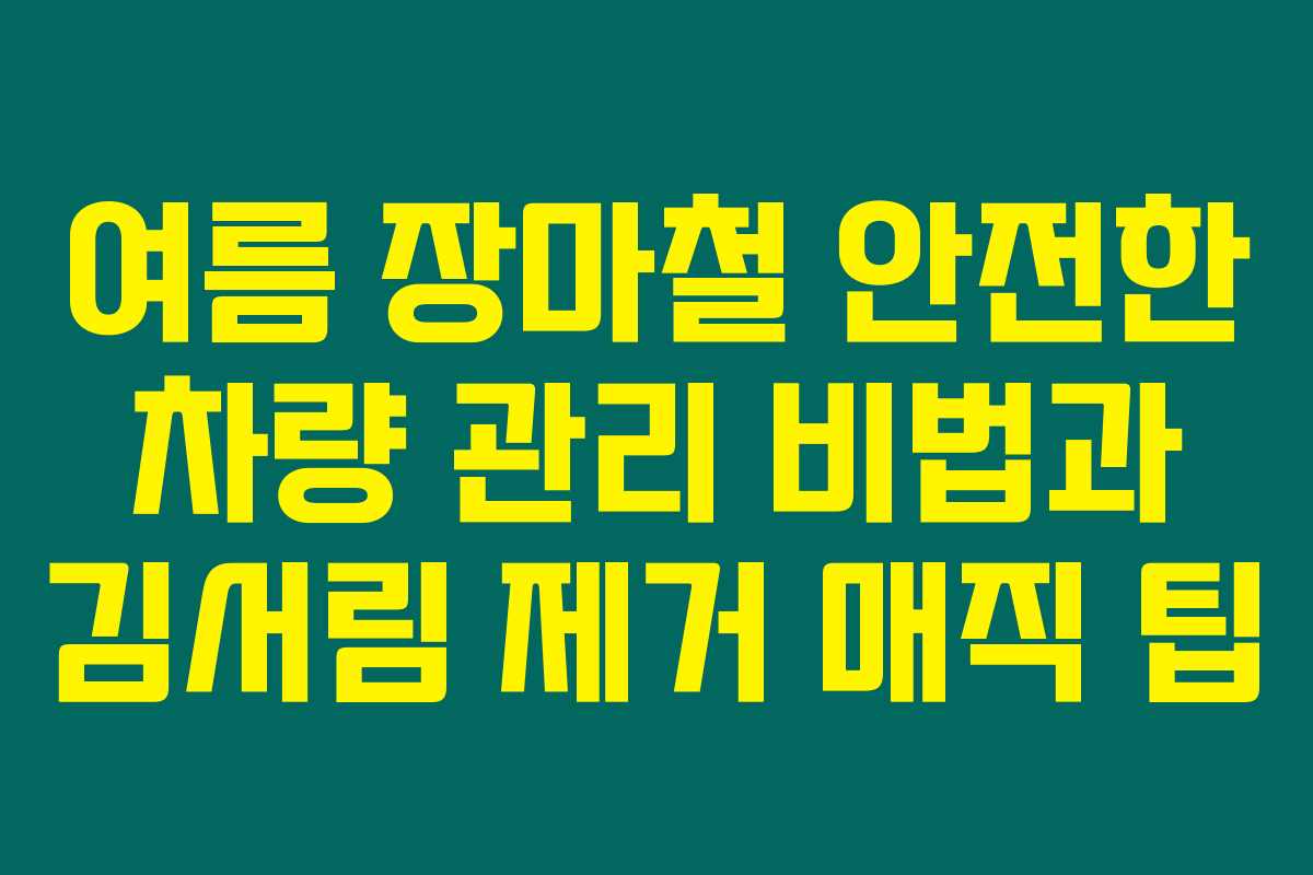 여름철 장마철에는 차량 관리가 정말 중요해요. 항상 안전 운전하시고, 시야 확보에 유의하시길 바랍니다. 필요하다면 차량 관리 전문가의 도움도 고려해 보세요. 유익한 정보가 도움이 되길 바라며, 안전한 여름 보내세요!
