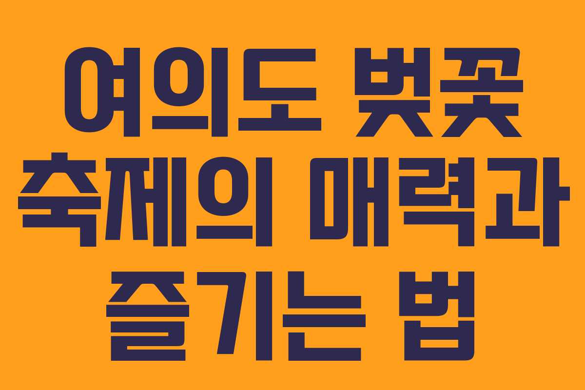 여의도 벚꽃 축제의 매력과 즐기는 법