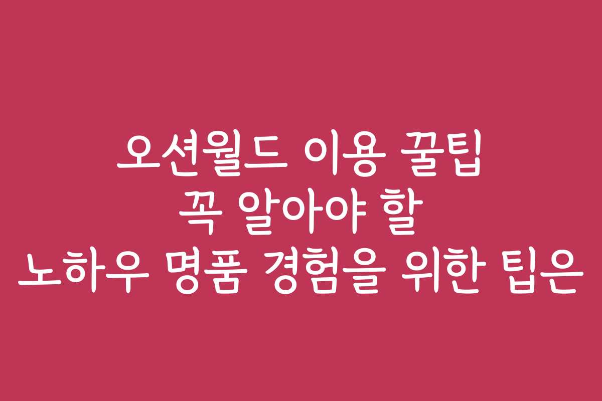 오션월드 이용 꿀팁 꼭 알아야 할 노하우 명품 경험을 위한 팁은