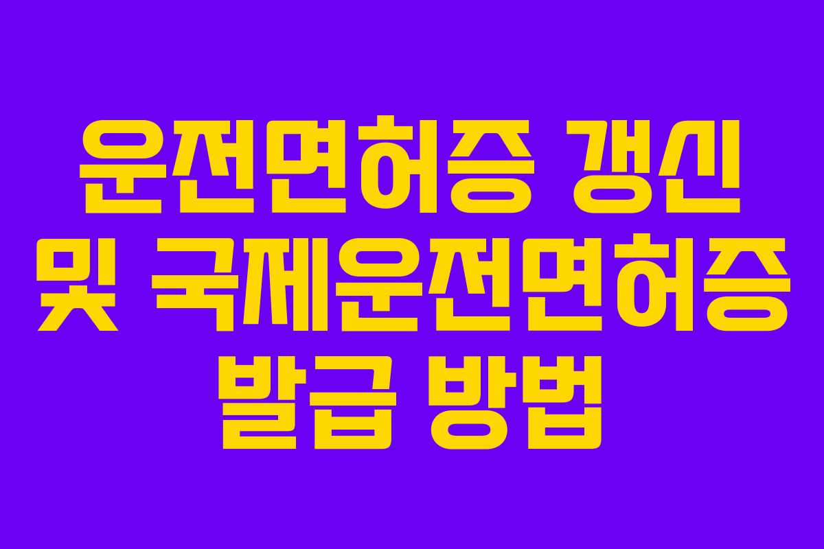 국내 운전면허증을 가지고 해외에서 운전하기 위해서는 여러 가지 방법이 있습니다. 이 글에서는 운전면허증 갱신과 재발급, 그리고 국제운전면허증 발급 방법에 대해 자세히 설명하겠습니다.